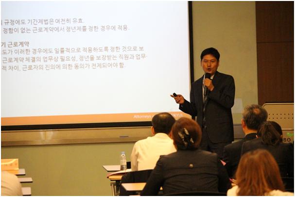 이번 세미나는, 2016년부터 정년 60세가 법정화되고 그에 따른 임금체계 개편의 일환으로 임금피크제를 도입하는 것이 목전의 과제가 된 현실에서, 기업고객의 실무담당자를 초청하여 정년연장에 따른 효과와 임금피크제 도입시의 법률상실무상 쟁점 그리고 기업의 대응방안을 함께 모색하고자 하는 취지에서 마련되었습니다.
